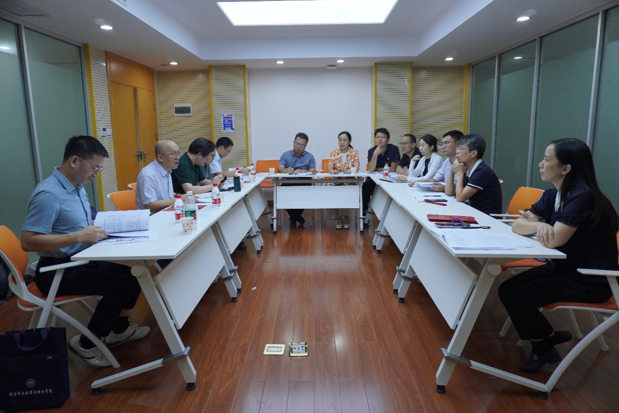 会议邀请了教育部高等学校统计学类专业教学指导委员会委员、云南财经大学石磊教授担任此次专业自我评估的专家组组长,国务院学位委员会(第七届)统计学科评议组成员、厦门大学杨灿教授,中国人民大学统计与大数据研究院院长朱利平教授,湖南大学统计系主任谭发龙教授,国网湖南省电力有限公司超高压变电公司主任章健军担任专家组委员,数统院统计系专任教师耿旖旎担任专家组秘书。